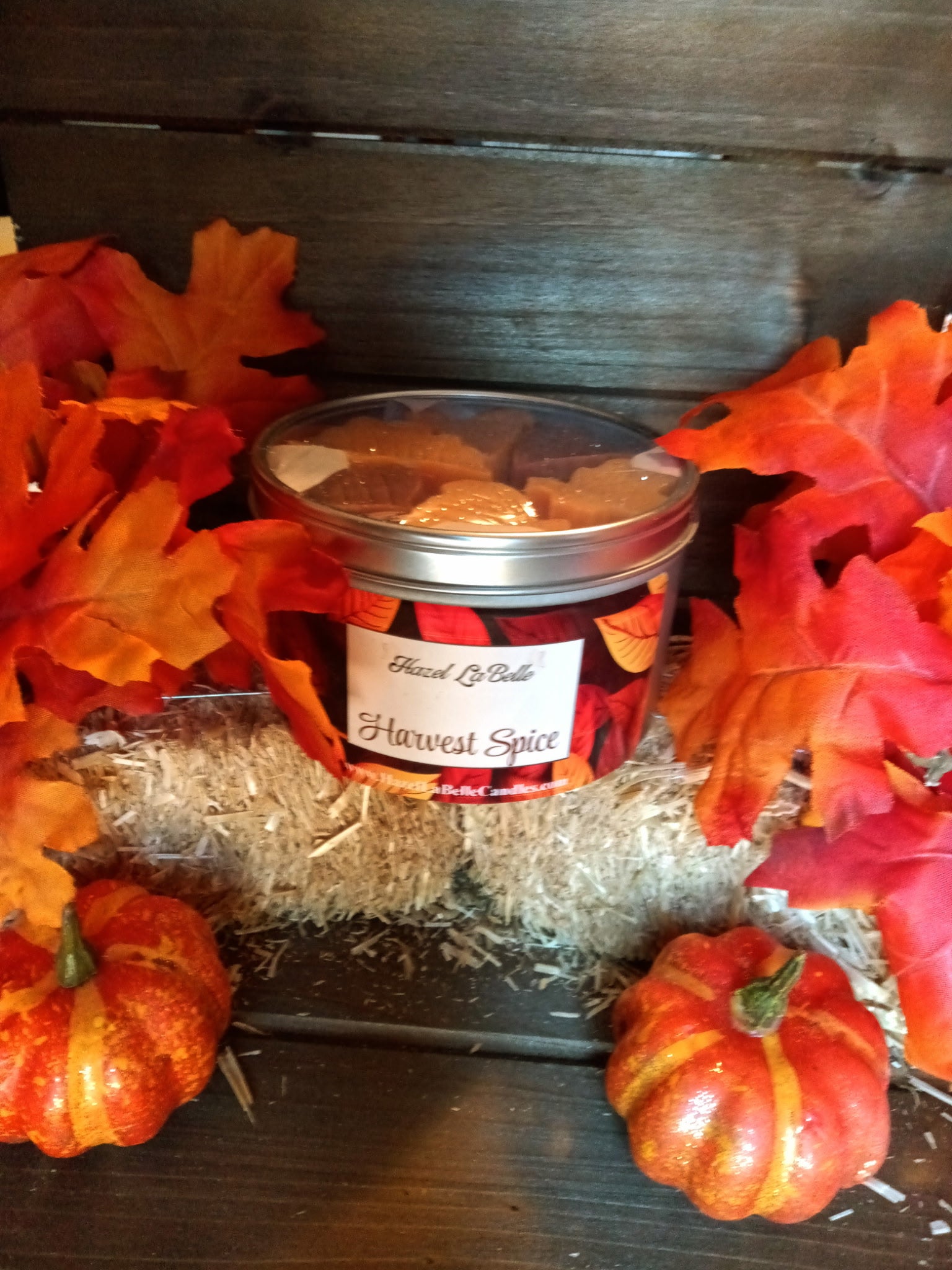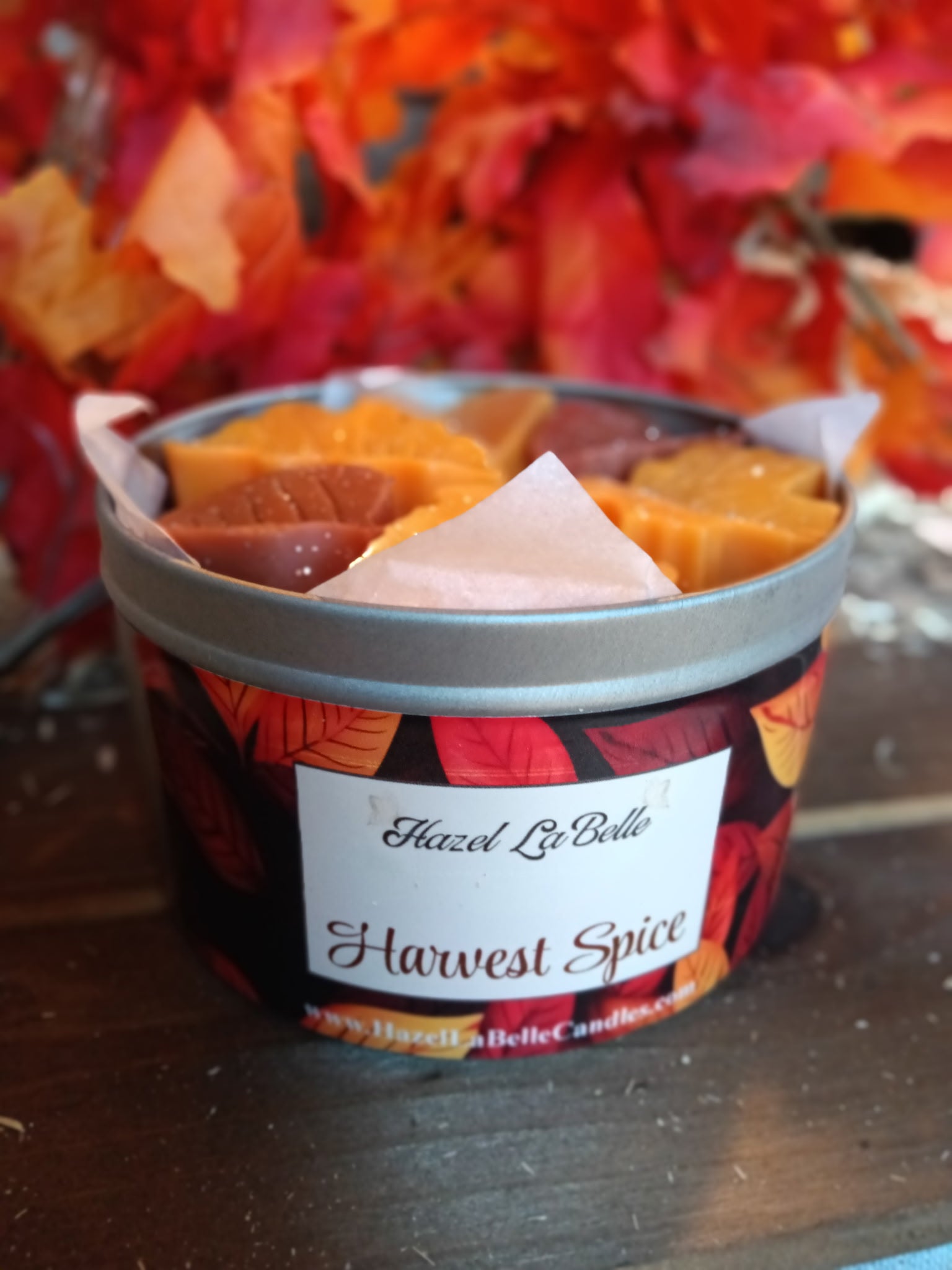 🍂Fall Leaves🍂 7 oz to 8oz Wax Melts ( Harvest Spice)Scent 🍂Harvest Spice Fall Leaves Wax Melts are scented with spicy cider blend, plum, pomegranate, clover, ginger and cinnamon sweat musk and vanilla. 🍂Tins comes with between 14 to 20 wax melts inside depending on the size of each wax